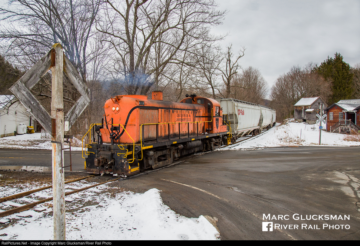 | Just Another Day In The Neighborhood. Snowfall from a recent storm still coated the ground small hamlet of Shushan, New York in Washington County on the morning of March 5, 2018. The Batten Kill Railroad's veteran Alco RS-3 was bringing a string of cars from Salem to Eagle Bridge, New York when it crossed Railroad Avenue. This engine was built for the Delaware & Hudson in 1952 and wears a Greenwich and Johnsonville tribute scheme representing the line's original operator. The railroad crossing sign in front of the train in the shape of a diamond is a similarly vintage but active piece of the railroad.