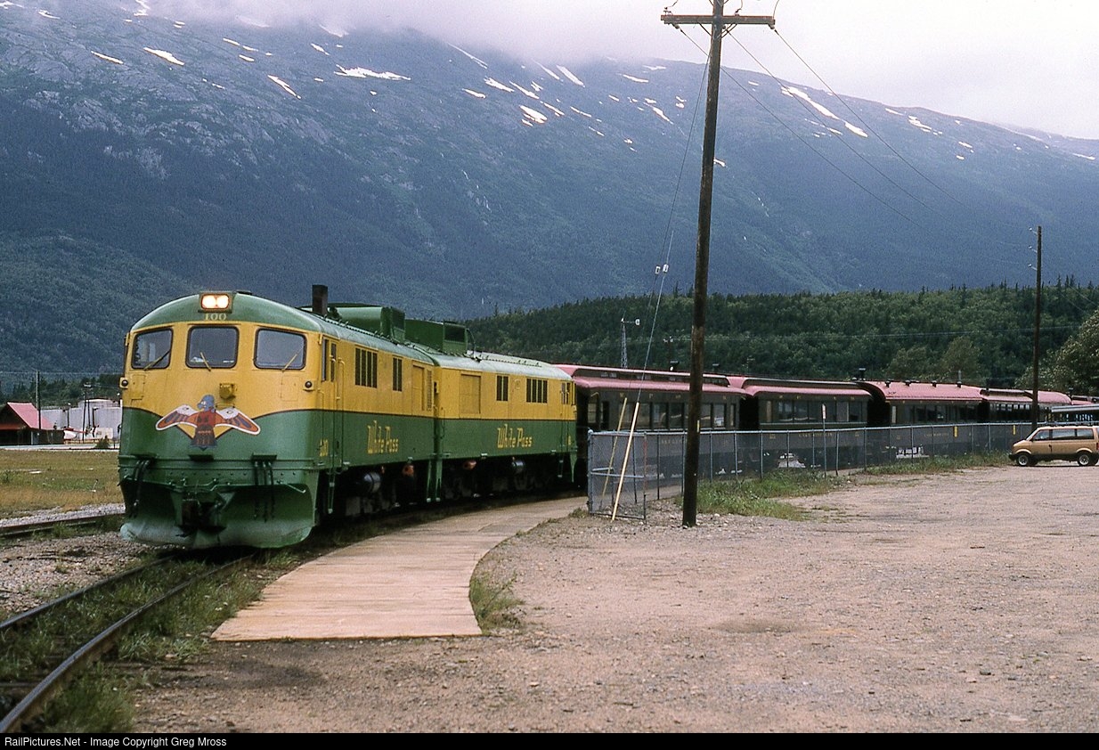 RailPictures.Net Photo: WPY 100 White Pass & Yukon Route GE 90 Class at Skagway, Alaska by Greg Mross