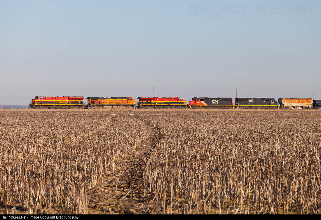 A colorful gaggle of power leads Memphis-Geismar A420 through the flood plains along the Mississippi River.