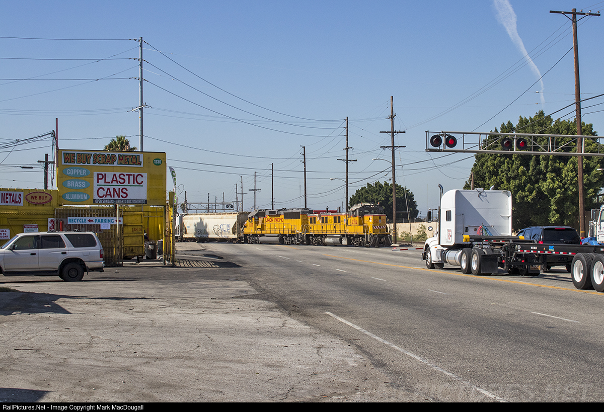 UP LOG16R returns to Mead Yard via the Wilmington Wye after switching industries off the Alameda Corridor with a genset and GP60 for power.