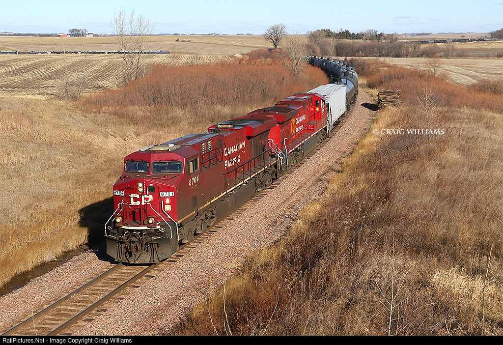 A Mona, IA, bound empty ethanol train twist thru the northeast Iowa hills on the Mason City Sub. The train passes MP 63, 63 miles west of Marquette, IA. At Nora Spring the plan is head up the Iowa Northern to Plymouth Jct. where the train will jump back onto the CP Owatonna Sub for the rest of the trip to Mona.