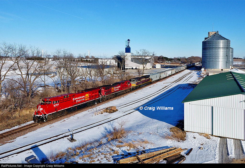 | This westbound guy die at MP 111 near Portland on the CP Mason City Sub. The BM31 crew came out and moved the train into yard limits at Mason City and took the power to the house. Here BM31 slowly rolls the last couple miles into Mason as they pass Portland with an empty 387 grain train. Yes that leader looked as fresh in person as it does on the screen!!! The 8167 was rebuilt in 2021 from #9598. |