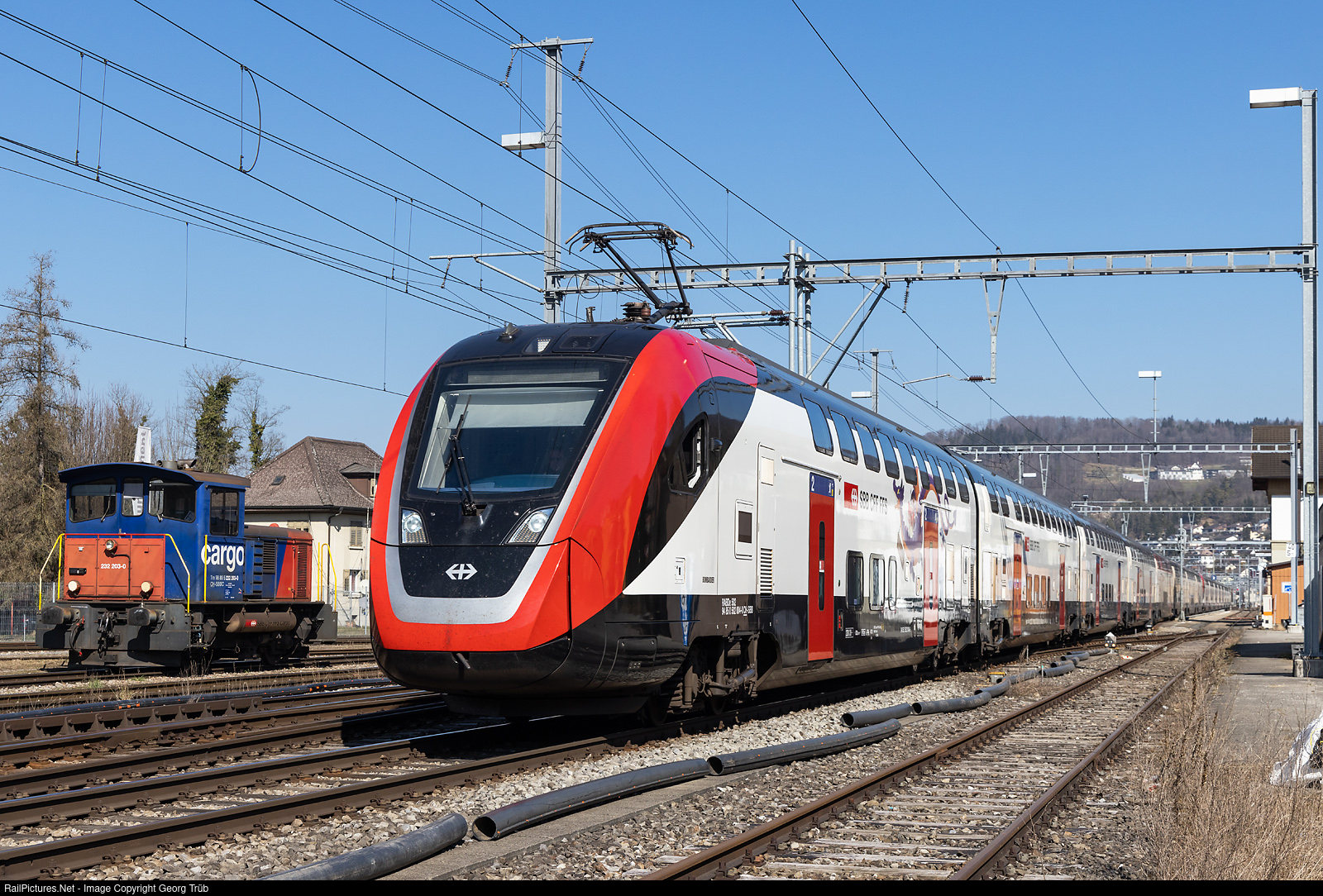 Due to catenary works in Mägenwil during 52 hours, on the east-west mainline of Switzerland, there were much timetable changes, rerouted or cancelled trains. This is the Intercity 10718, running from Zürich HB instead of St.Gallen only, to Bern-Lausanne-Geneva Airport, and rerouted from Killwangen via Baden-Brugg-Wildegg to Rupperswil, instead of via Heitersberg tunnel-Lenzburg. "FVD" RABDe 502 # 004 and RABe 502 # 211 in multiple control are running the train through Wildegg. On the left, diesel shunter Tm 232 # 203 of SBB Cargo.