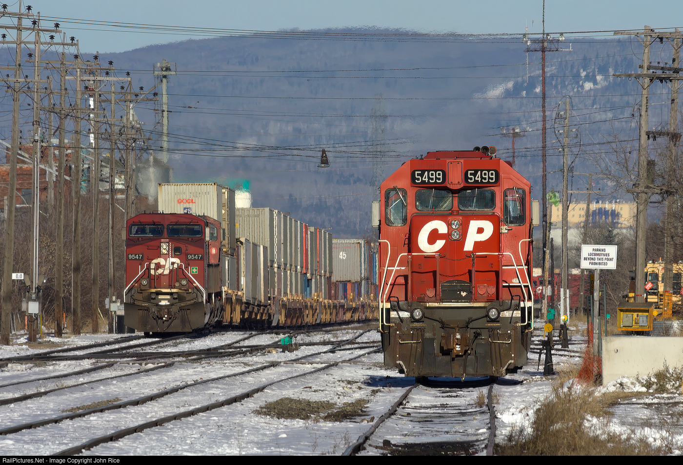 CP 5499 parked while a westbound pulls up to the Depot for a crew change.