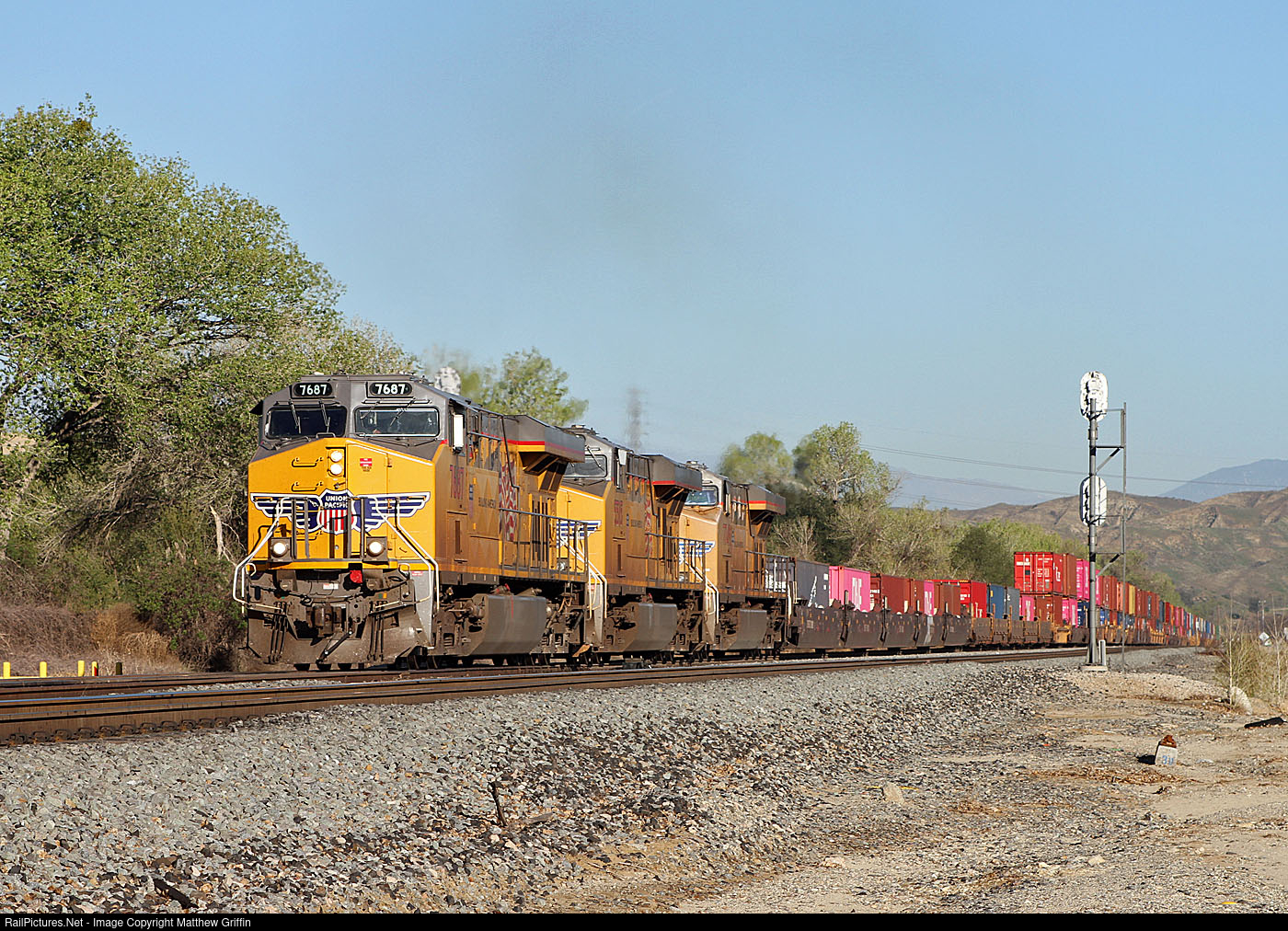 RailPictures.Net Photo: UP 7687 Union Pacific GE ES44AC at Hinda, California by Matthew Griffin