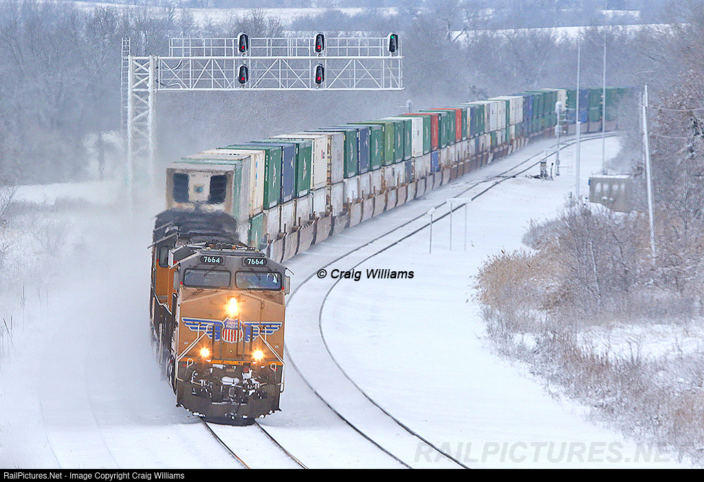Trackage rights UP train from City of Industry, CA, to Global 4, IL, rumbles east on the BNSF Marceline Sub. The train has just knocked down the west end of Baring in northern Missouri. This train will change crew at Fort Madison, IA, 60 miles ahead.