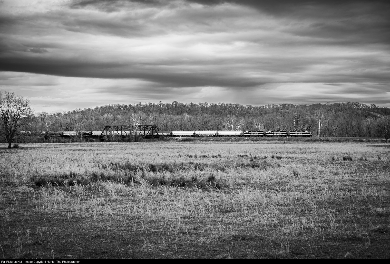 Heading back to the yard, the Watts Dodger local crosses the Illinois River near Watts, OK on a cloudy March 21, 2022, shortly before a thunderstorm would roll through.
