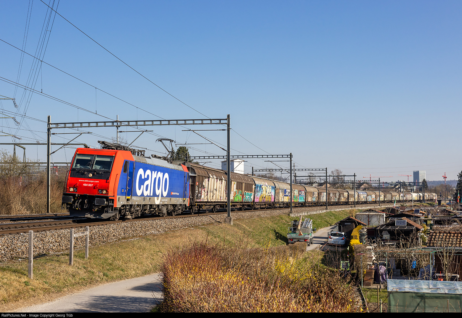 | Bombardier TRAXX F140 MS of SBB Cargo is pulling freight train 63120 from Gossau SG via Winterthur-Kloten-Regensdorf to Limmattal shunting yard (RBL), between Winterthur and Winterthur Tössmühle. |