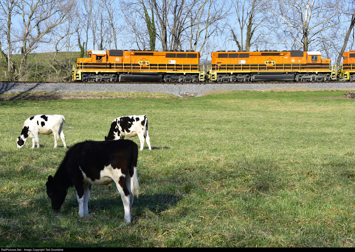 “Tie on the Old Feedbag” Maryland Midland’s UBHF, still operating on its winter schedule despite the calendar, heads west with 20 cement loads through Detour, Maryland. At 17:18, it’s dinnertime for the locals, who appear unfazed by the passing power.