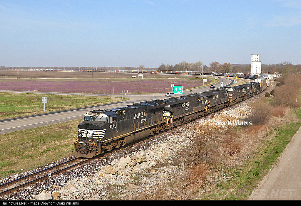 NS eastbound train #125 is just off the BNSF Marceline Sub at Carrollton. The train is working east from KC to Moberly, MO, and the next crew change point. This train runs from the NS Avondale Yard in Kansas City, MO, to Youngstown Yard in Louisville, KY, daily and does some work as they go.
