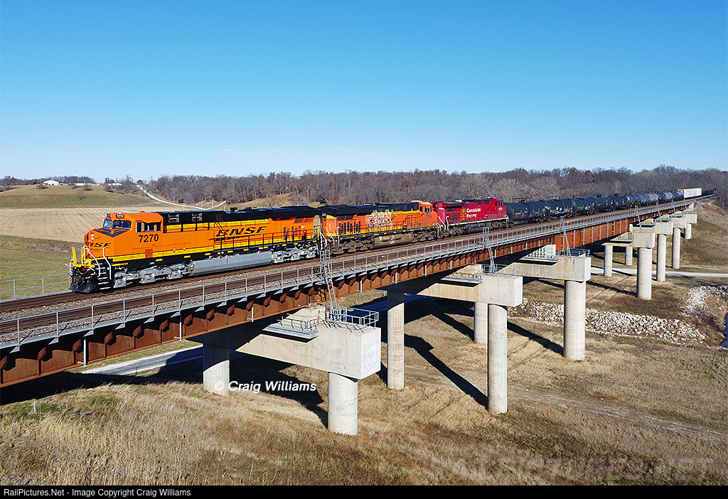A Tulsa, OK, bound freight train roll across the 741 foot long Media bridge with a squeaky clean leader. The bridge was replaced in 2018, replacing the one built in 1910. The new bridge doesn't have as cool of look as the old bridge, but its still a nice spot on the Transcon. Media is located at MP 204 on the BNSF Chillicothe Sub between Chicago and Fort Madison, IA.