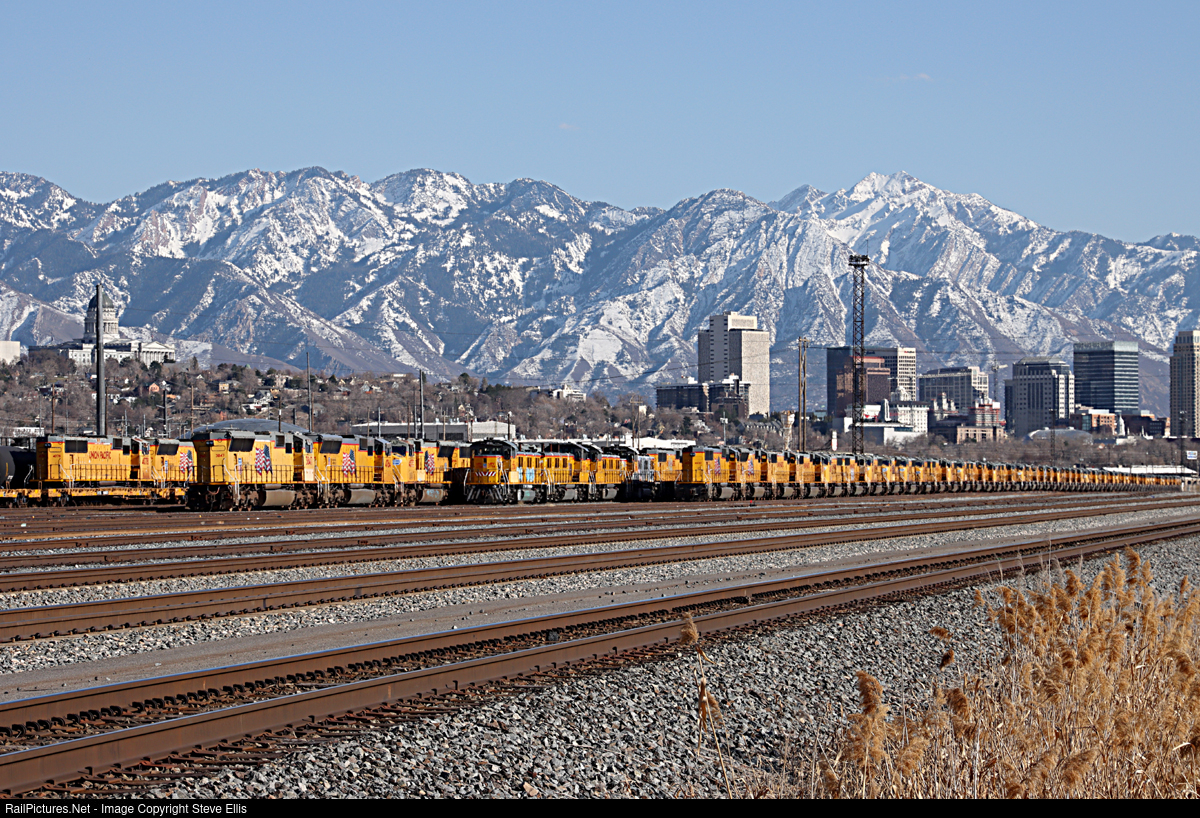 | What does a couple million dollars look like, here you go. It's not very often you can get this good of a look at the Salt Lake City dead line. Four NRE 3GS21B, A couple C44-9W and the rest are SD70M's. I would guess atleast 200 locomotives. |