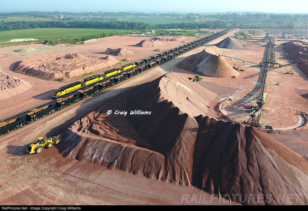 The Monday's rock train out of Dell Rapids started pulling around 7:45 am from the East Pit. Here the job pull down to the West Pit to pickup the rest of the loads before heading towards Sioux City. The D&I is owned by L.G. Everist Inc. out of Sioux Falls. The L.G. Everist has been in business since 1876. Their Dell Rapids operation features an east and west quarry, that can process quartzite concrete aggregates, asphalt aggregates, seal coat, erosion stone, riprap, deco stone, base aggregates, according to their website. The DAIR operates 1 train in and out Dell Rapids 5 days a week traditionally during the summertime back in 2021. One of the new additions is on the point, #3024, ex-CP 6033.