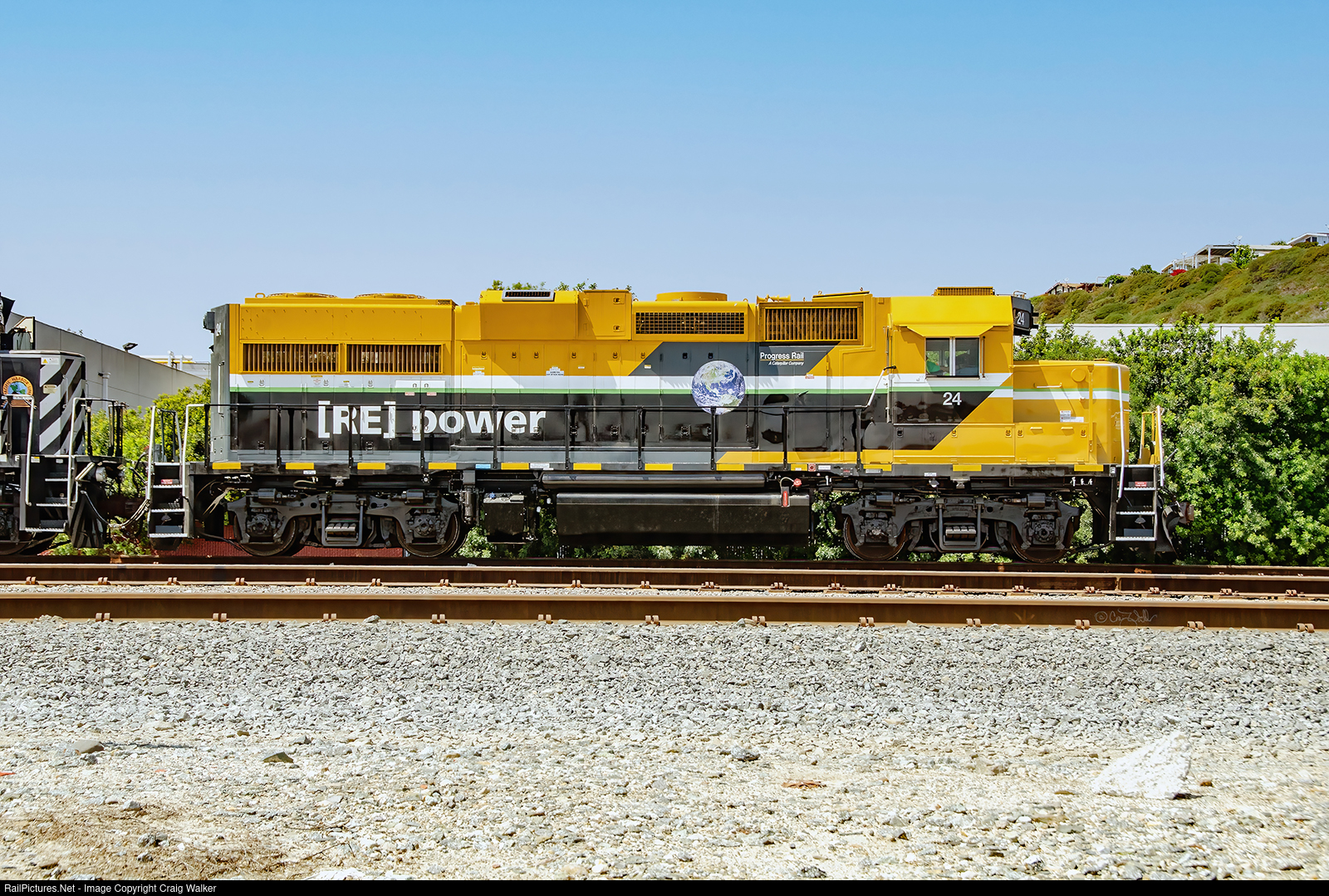 Progress Rail Services 24, a PR24B demonstrator, was testing with Pacific Harbor Line 3GS21C 80 on the Alameda Corridor. PRLX 24 was built in October 2016 from PRLX GP40 3011 (ex-Wisconsin Central 3011, ex-Gateway Western 3011, ex-Chicago Missouri & Western 3011, ex-CMNW 676, ex-Union Pacific 676, née-Western Pacific 3528 (built in August 1971). (Compton, California – April 4, 2017)