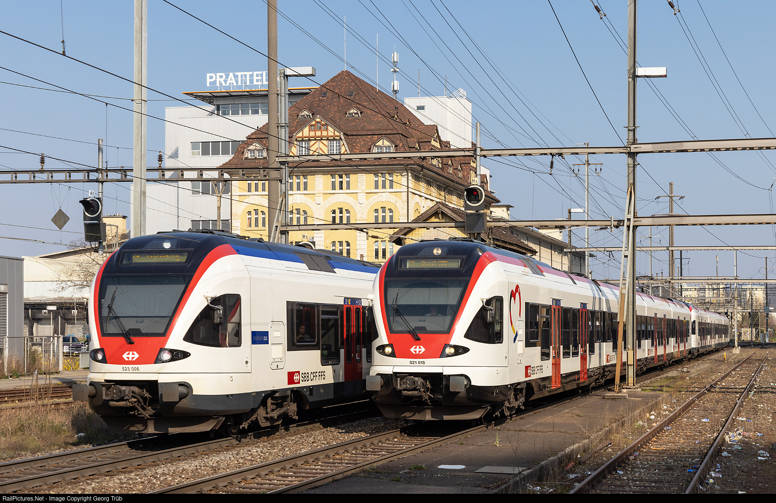 RailPictures.Net Photo: 523 006, 521 018, 523 055 SBB RABe 523, RABe 521 at Pratteln, Switzerland by Georg Trüb