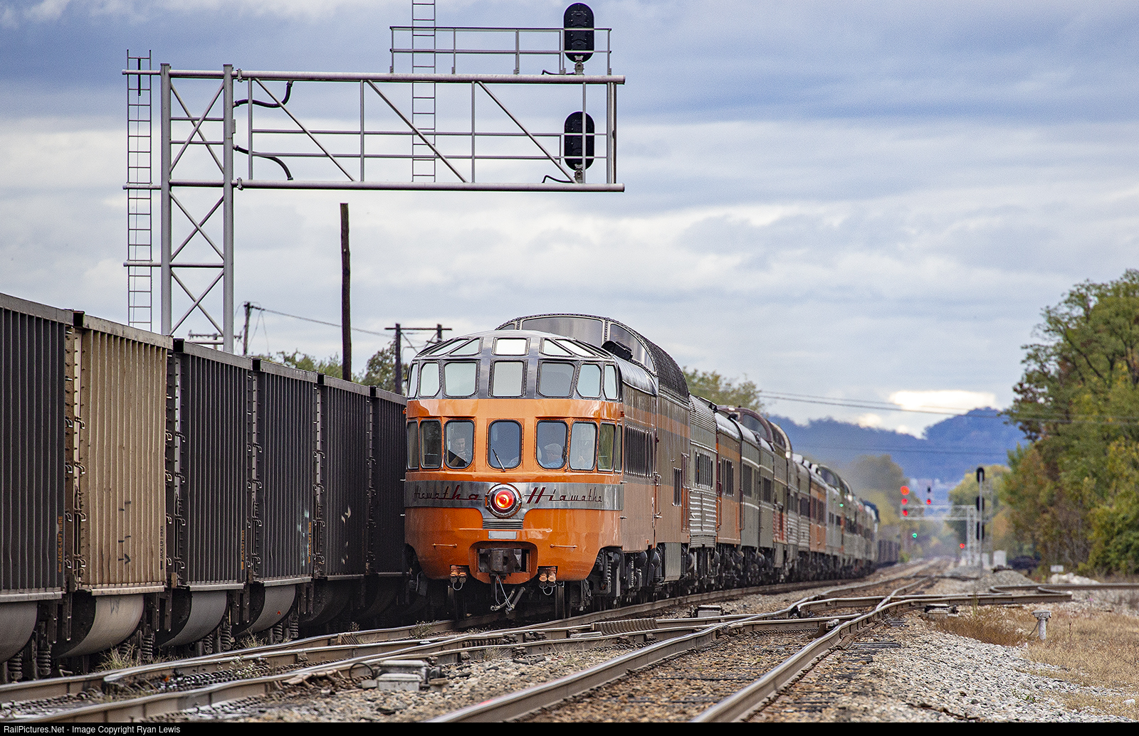 | Headed East to Hinton, the rear of the Autumn Colors Express passes through St. Albans, WV on this overcast Fall morning. |