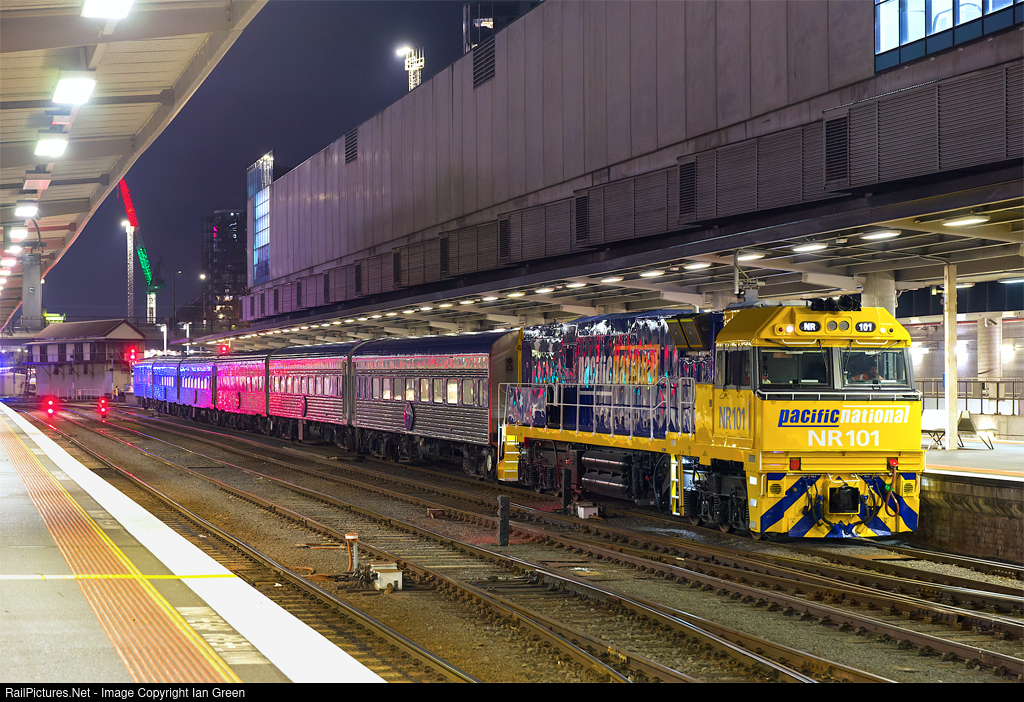 NR101 arrives at Southern Cross Station with 5AM8 Overland from Adelaide.
