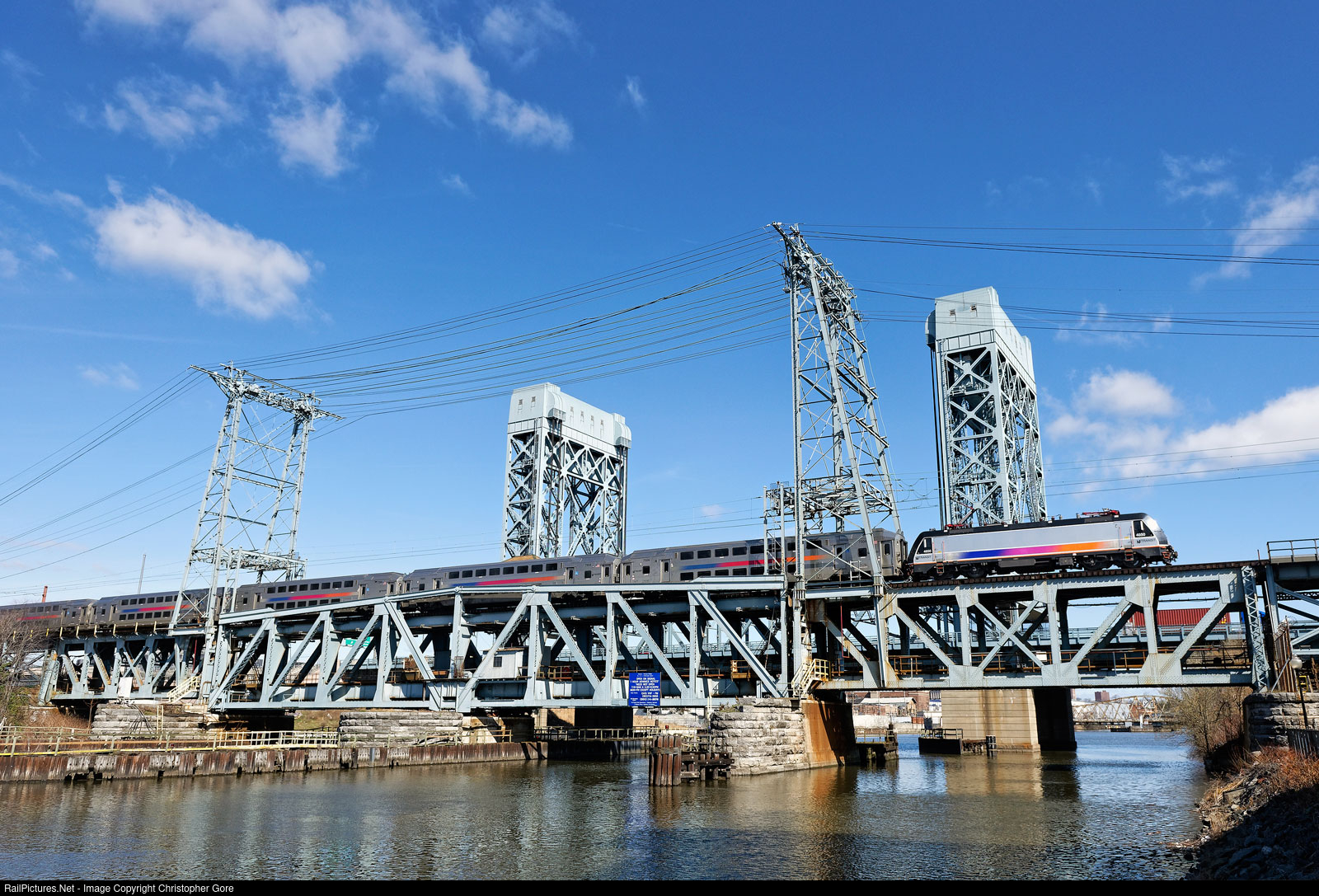 NJ Transit ALP-46A 4650 crossing the Passaic River into Harrison.