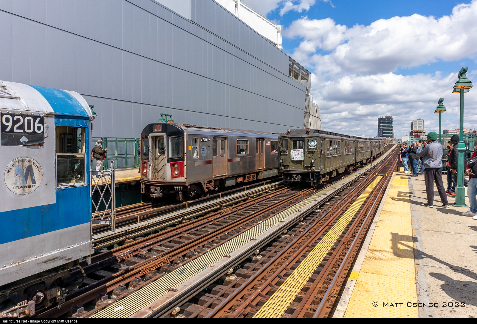 Lo-V 5292, R33 9206, and R142 7725 are seen at 161st St-Yankee Stadium station on April 8, 2022. The two vintage trains were brought out for special runs to carry fans to the Yankees home opener. The new tech train was doing the same, but with much less fanfare!
