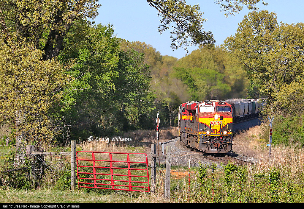 A San Juan Del Rio, Mexico, bound grain train is in heavy braking as they roll south out of Stillwell on the Heavener Sub. The train is dropping down a heavy grade from Stillwell to Cave Springs, around 10 miles. The railroad stays pretty much dropping down grade all the way to Sallisaw, a total of 33 miles. The railroad tops out at Stillwell at 1148 feet and drops all the way down to 497 feet just east of Sallisaw.