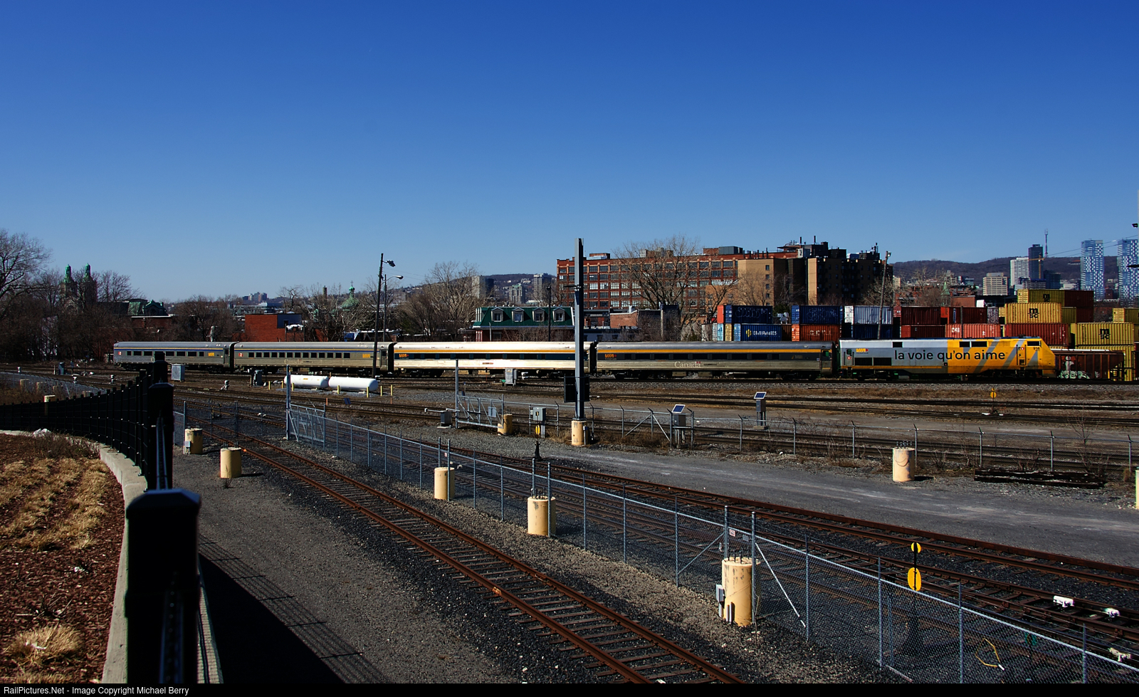 | VIA 24 is backing up on the Montreal Sub after shoving out of Central Station. A bit later it will change directions and head towards the Victoria Bridge and eventually Quebec City. |