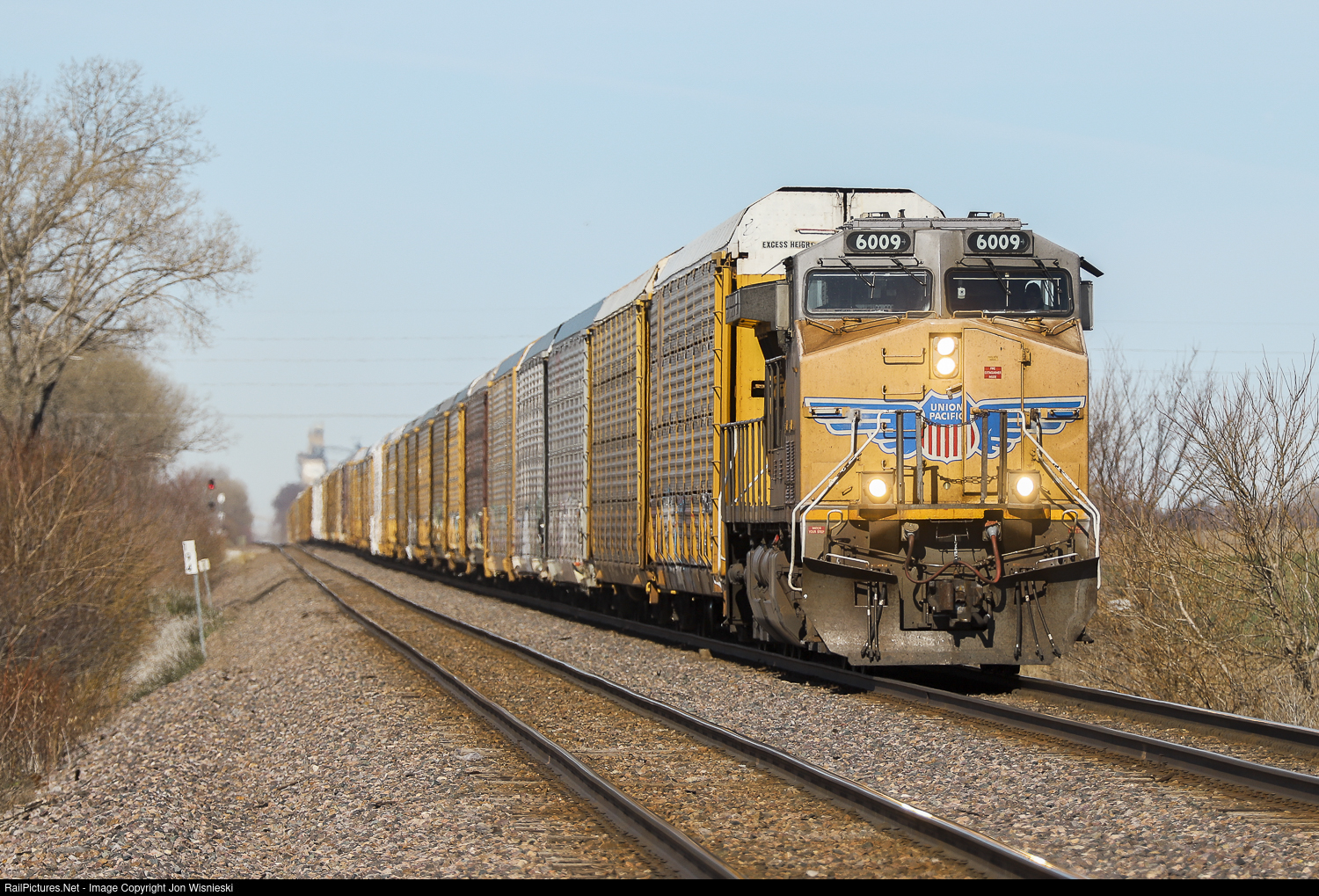 UP 6009 does the honors on this eastbound empty autorack train.