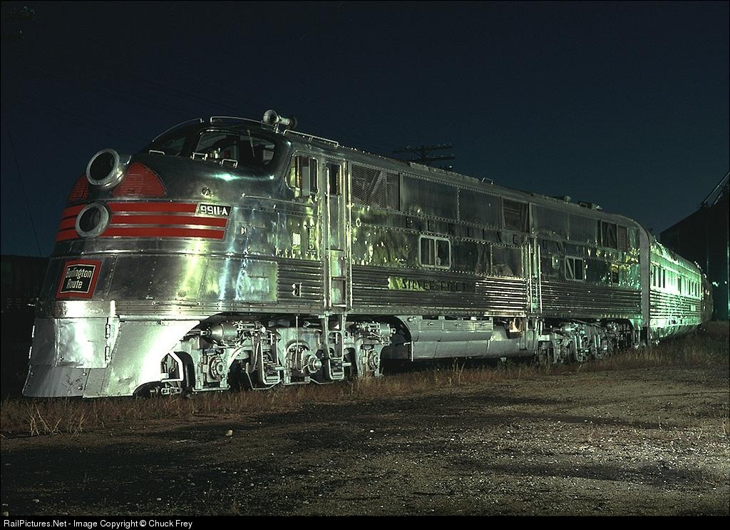 CB&Q 9911A lays over on the WC in Burlington with the NE Zephyr train set.
