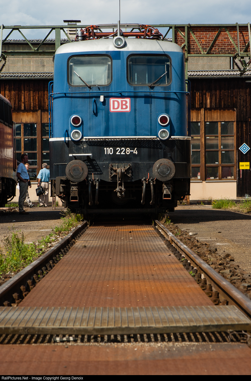 | DB Regio passenger electric is still in her original 1960s blue paint as she poses at a special event at Stuttgart's former locomotive shops in July 2009, showing her classic Deutsche Bundesbahn face. |
