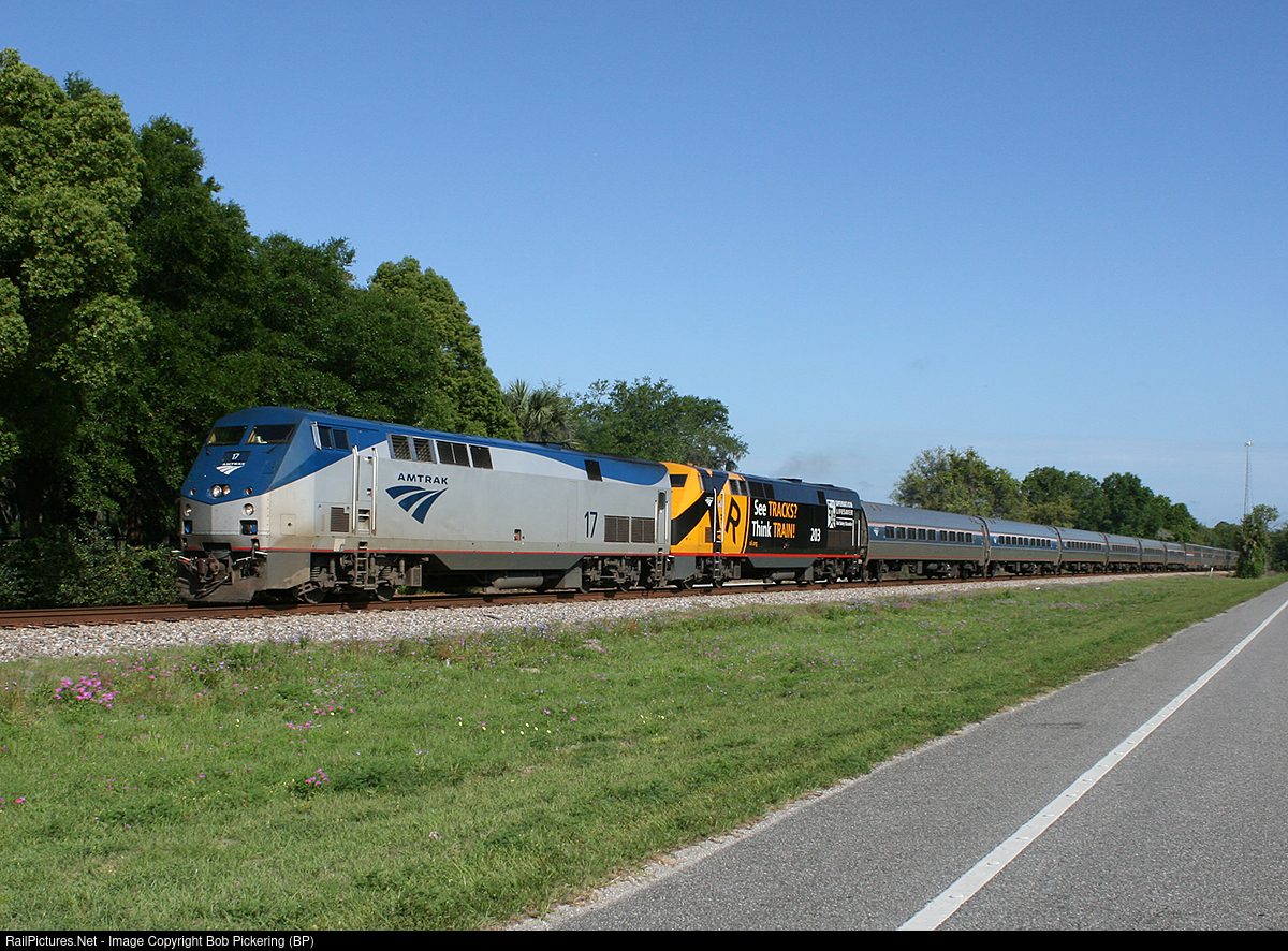 | Irony on first Florida visit is Amtrak's motor promoting crossing safety trailing, due to Amtrak's fears of a Florida driver somewhere hitting it, an unfortunate record in this state. |