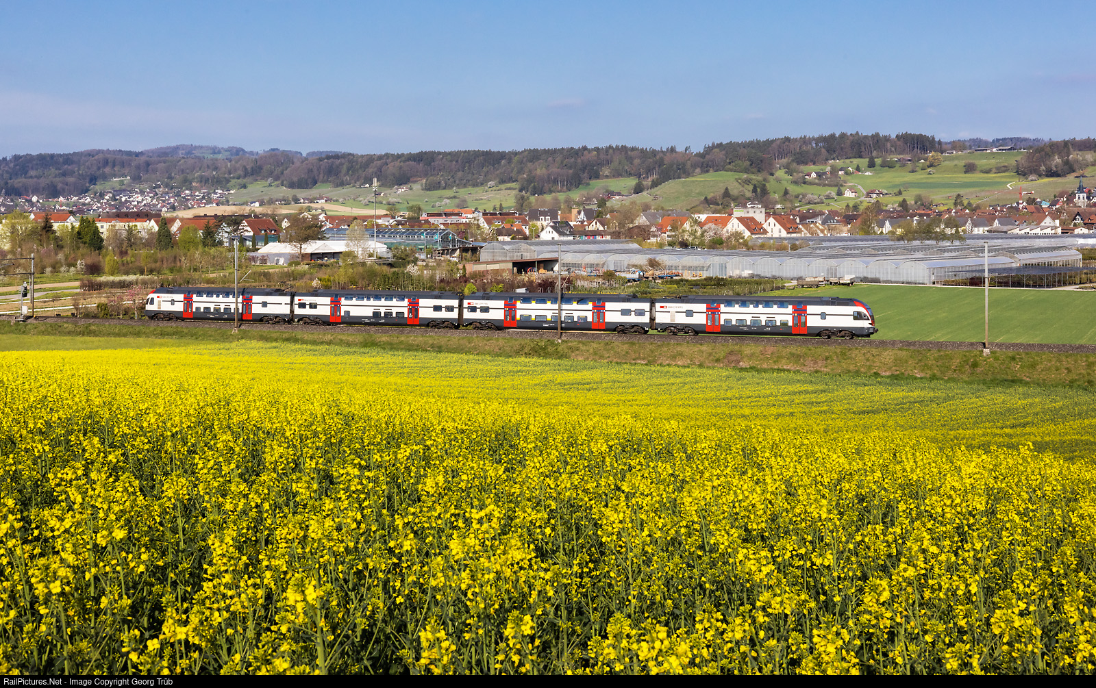 | "RVD" RABe 511 # 117 of the SBB is running the Regio Express 4914 from Zürich via Bülach to Schaffhausen, between Rafz and Lottstetten. |