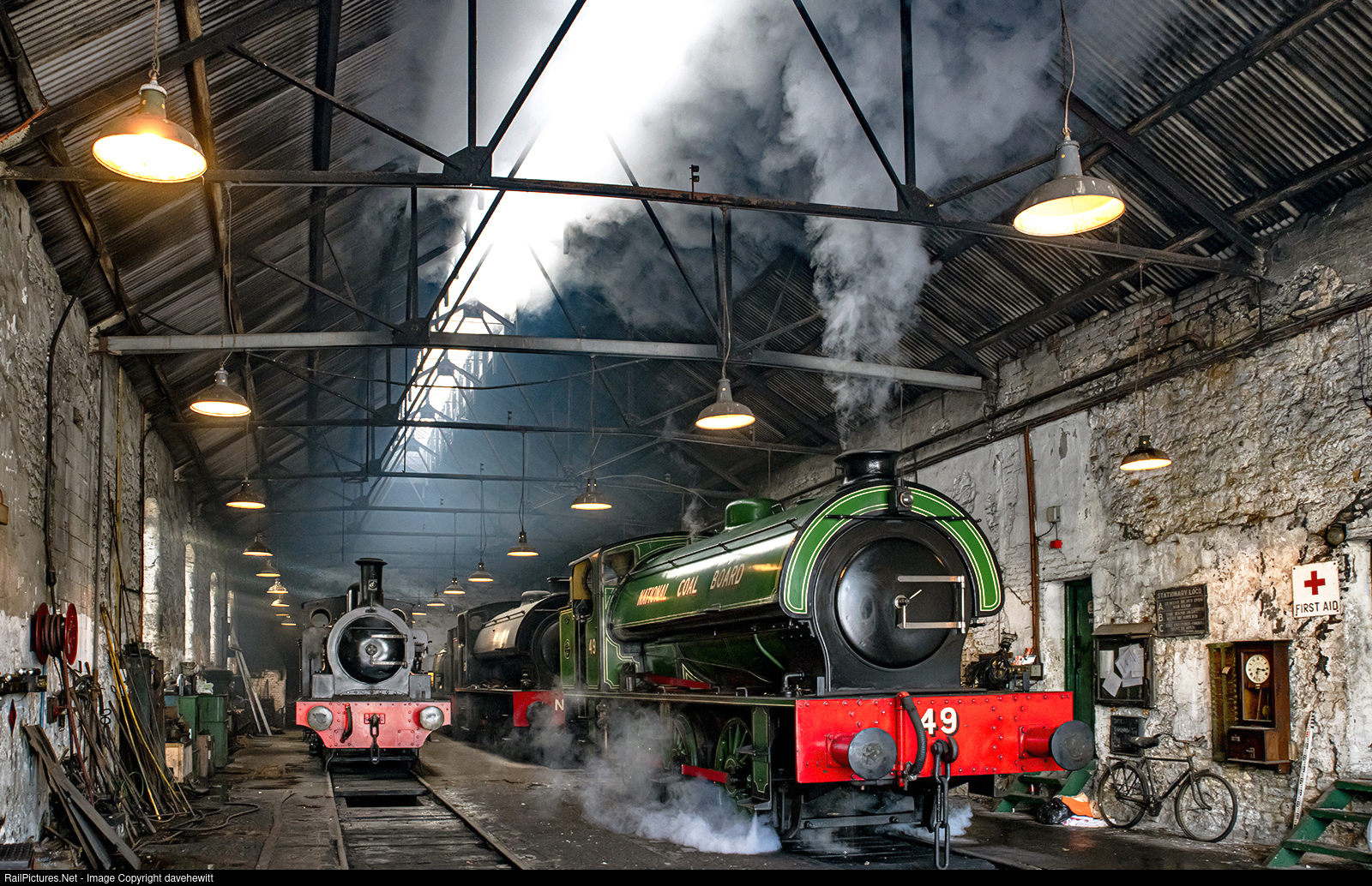| Marley Hill engine shed built in 1854 and has continuously housed steam locomotives since that time , making it the oldest working shed in the world. During the Covid lockdown it has been refurbished but this is how it was in 2019 when No 49 leaves the shed for its first working of the day |