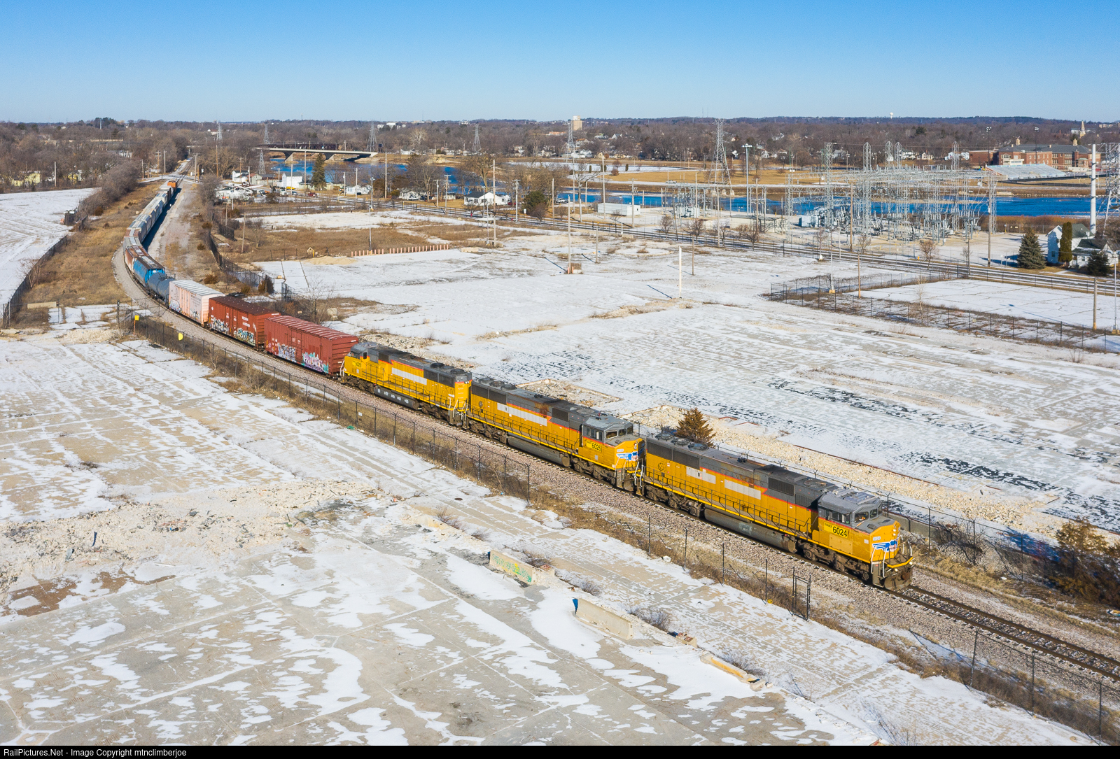 | With a light dusting of snow on the ground, a trio of ex-UP SD60M's lead the Wisconsin & Southern's L531 as it departs from Janesville, Wisconsin. The train is rolling by the empty lot that is all that remains of the General Motors Janesville Assembly Plant. Built in the late 1910's for GM's Samson Tractor Division, the plant was idled in 2008 and demolished between 2018 and 2020. |