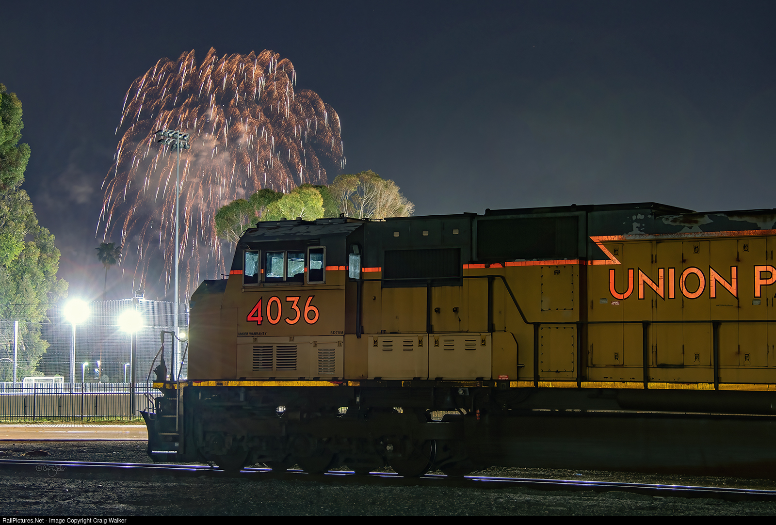 A single Union Pacific SD70M, 4036, lays over at the railroad's West Anaheim Yard, indicating that the latest Anaheim Hauler from West Colton must not have been very lengthy, as they usually warrant two or three six-axle engines. But UP 4036 was positioned well, should it have had a crew, to take in Disneyland's nightly "Fantasy in the Sky" fireworks spectacular – a clear sign that summer is rapidly approaching! (Anaheim, California – April 24, 2022)