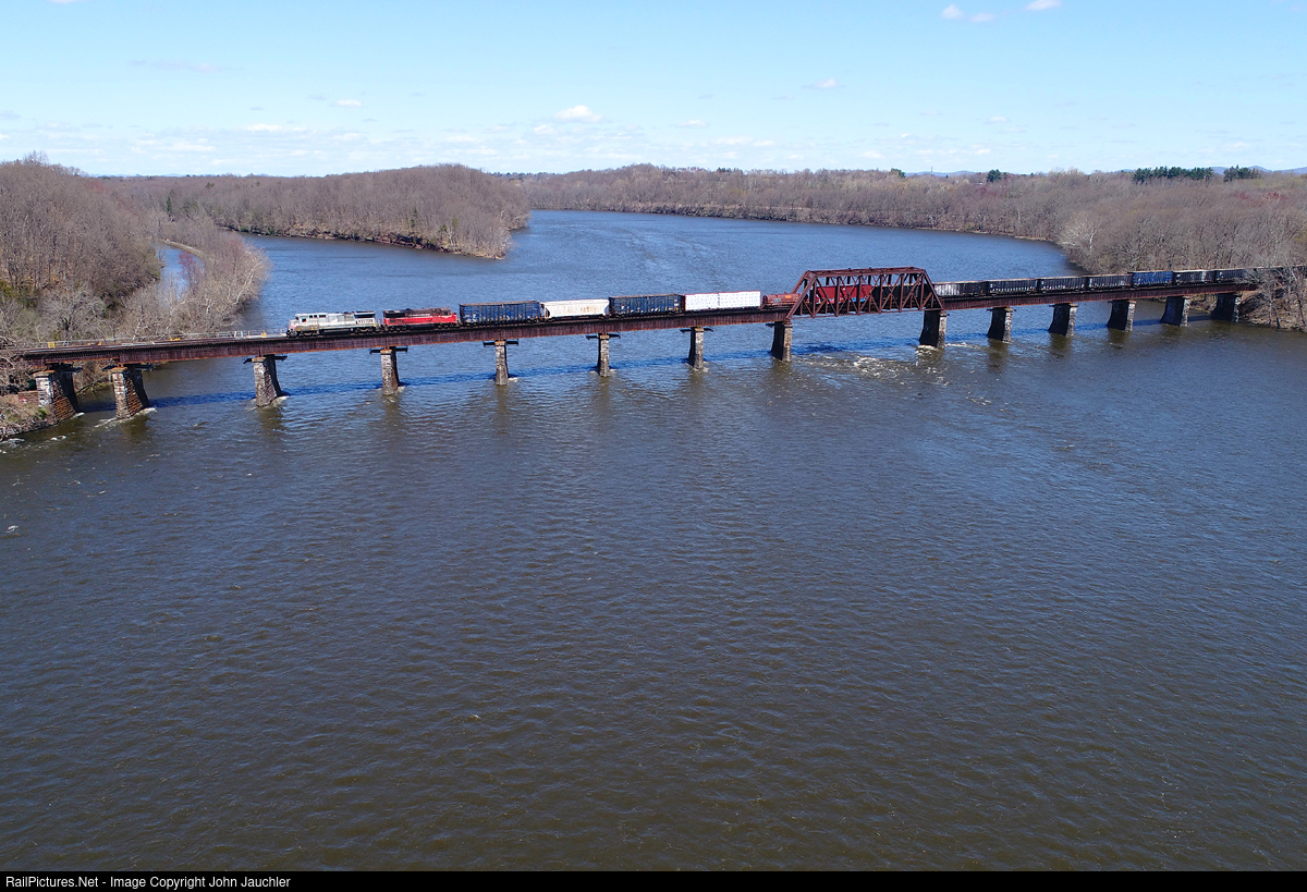 Most of what you'll see on Amtrak's Springfield Line is passenger equipment, but if you play your cards right, you can reliably catch Connecticut Southern's Hartford, CT-West Springfield, MA turn on weekdays, which crosses the Connecticut River on its trip. The bridge over the river, connecting Windsor Locks with Enfield, dates back to 1866, and was built in sections in England that were shipped to the United States due to Civil War demands on the domestic iron industry. Here, Connecticut Southern train CSO-4 is on the return trip back to Hartford after exchanging cars with CSX at West Springfield.