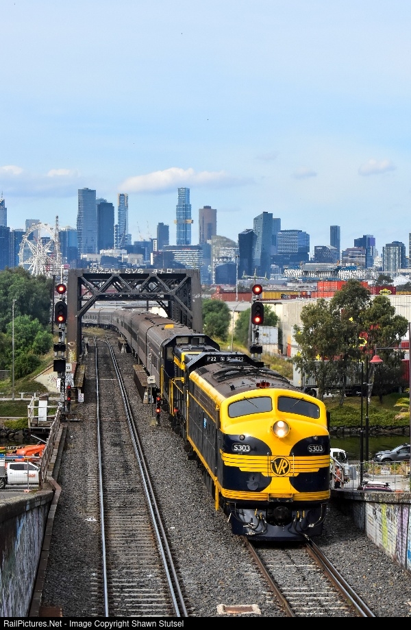 SRHC's S303, P22 and T357 with THNSW/ST James Rail Tours 60th Anniversary Southern Aurora running as 6L66 are seen approaching the Bunbury Street Tunnel Footscray, Melbourne heading north back to Sydney.