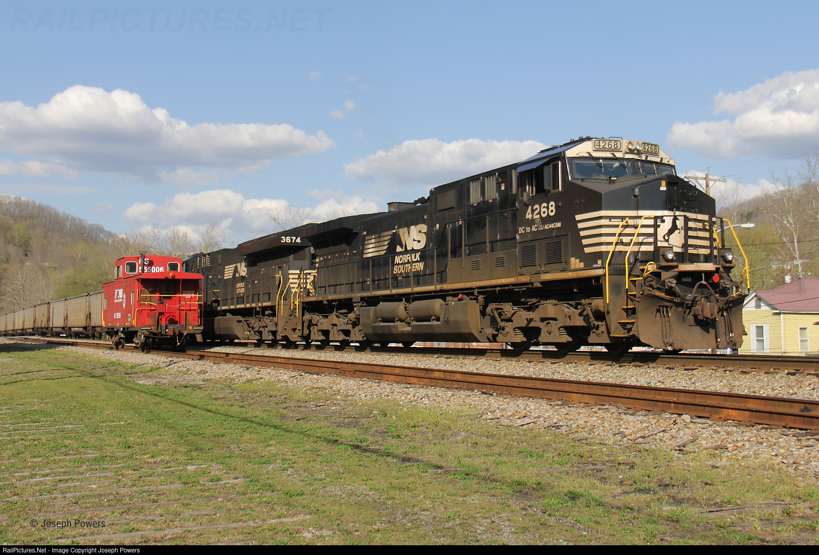 Norfolk Southern empty coal train U47 is making a reverse move in downtown Appalachia, Virginia toward the loading facility at Wentz, Virginia about five and a half miles away. The U47 crew began their day in Norton, Virginia. After arriving in Appalachia, Virginia they picked up a caboose from the track on the left for the reverse movement.