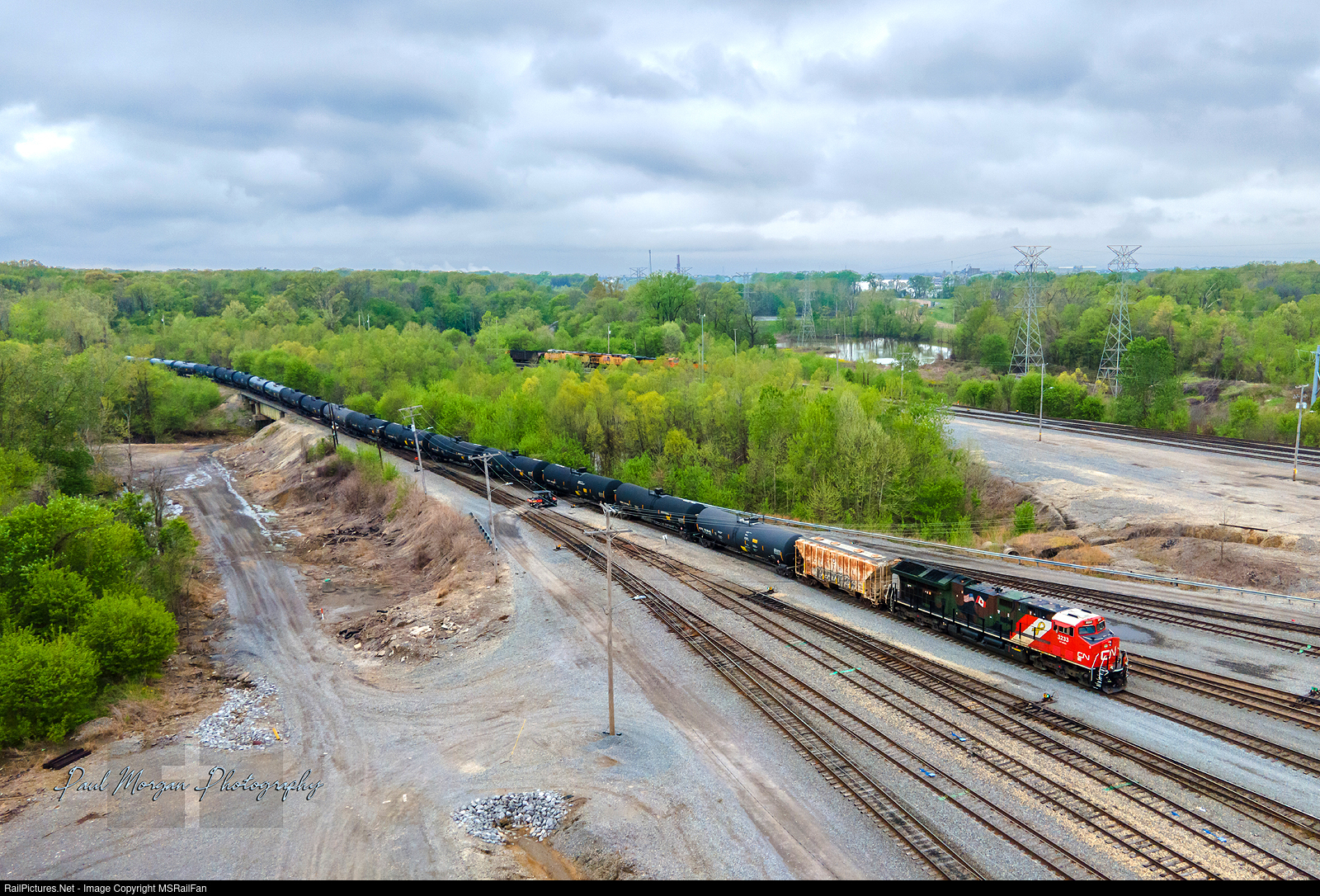 CN 3233 (Veteran's Unit) led a unit ethanol train into Harrison Yard and departed rather soon afterwards on its way north.