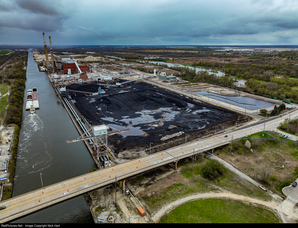 | The NRG Will County Generating Station in Romeoville, IL opened in 1963 and has been coal fired since that time. With coal deliveries from the Union Pacific, the plant has two 1959-built SD20's assigned to unload the coal. Late in 2021, it was announced that the Romeoville plant and sister Waukegan plant would be closed in June 2022. I suppose time will tell how much truth there is to that announcement. The plant's two SD20's can be seen to the right. The plant is in the process of unloading a train of coal and there's another train in the staging yard that has yet to be unloaded. The Sanitary & Ship Canal can be seen to the left. |