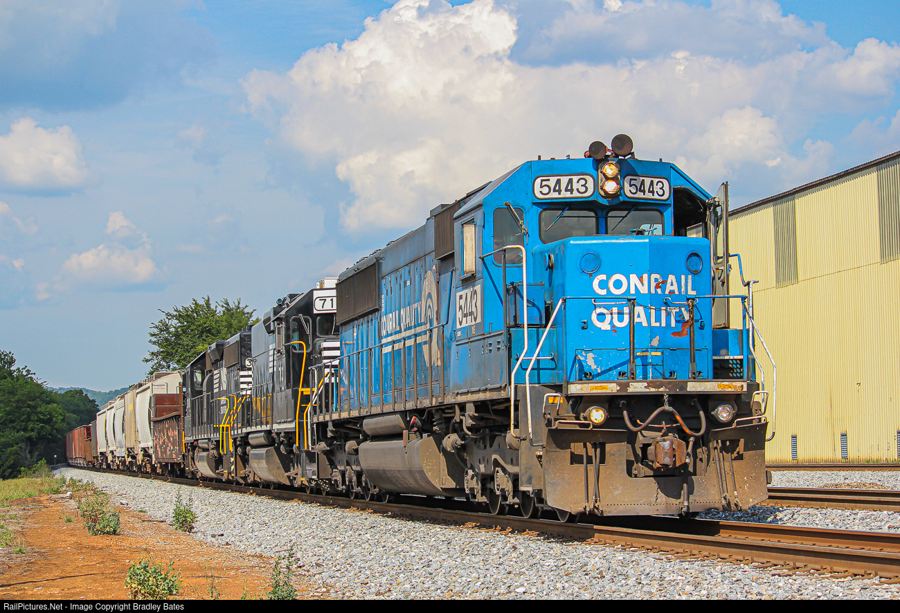 | Norfolk Southern local A21 heads south through 50th Street in Woodlawn, AL., on their way to Wilton with NS SD50 #5443 still wearing it's Conrail Quality paint scheme leading the way |