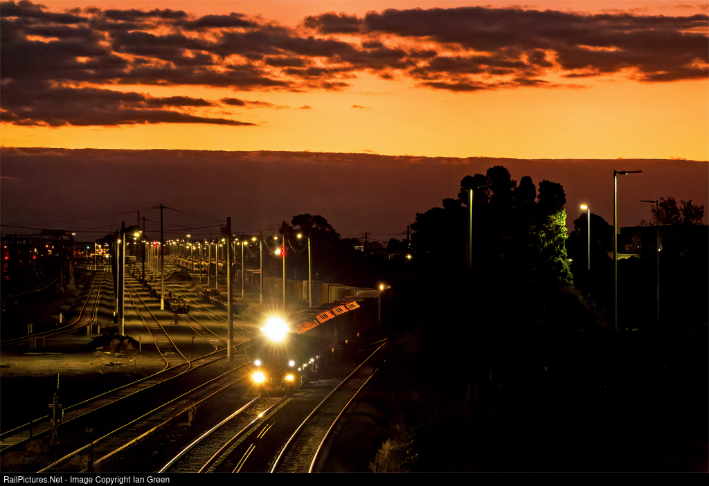 Train 7922V from Dooen to Appleton Dock led by CSR017 rolls towards West Footscray Junction shortly after sunset.