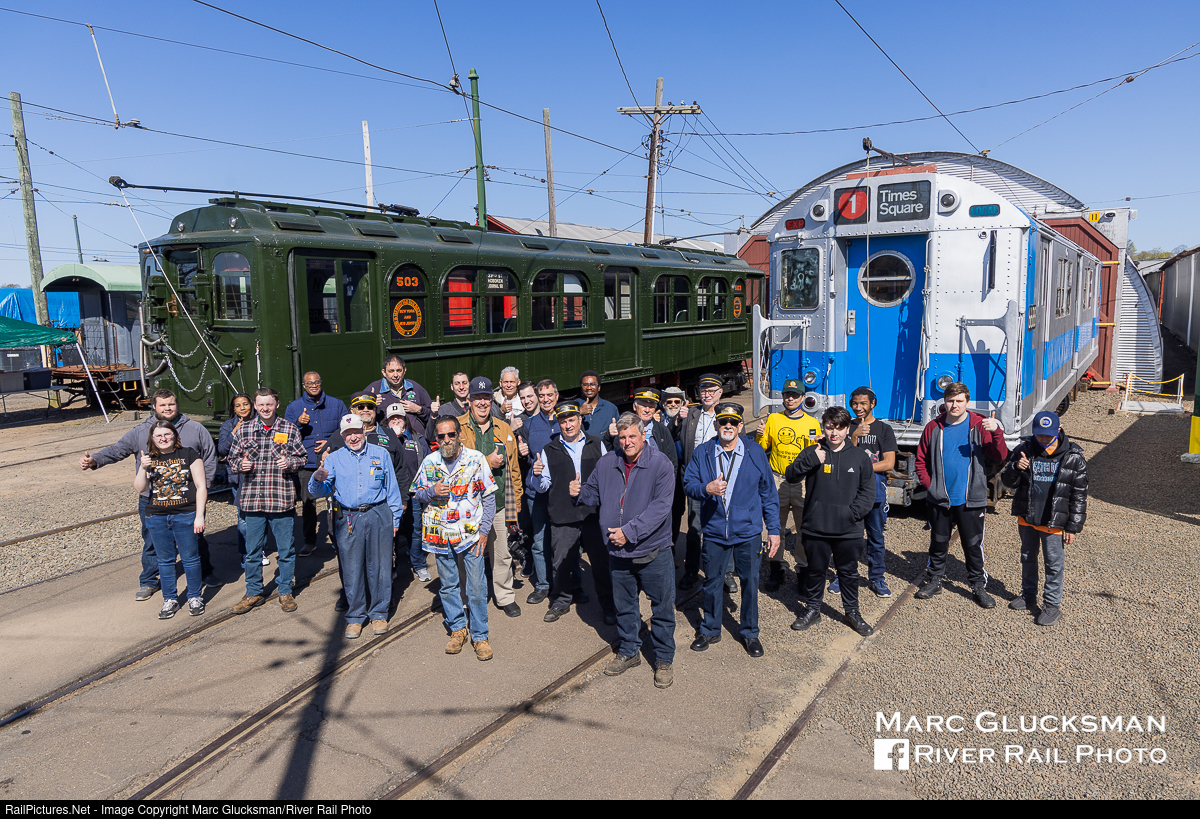 The Members On Members Day. Saturday, April 30, 2022 was Members Day at the The Shore Line Trolley Museum. The early risers gathered for a photo in front of Hudson & Manhattan āJā car 503 (ACF, 1928) and NYCT Subway R-17 6688 (St. Louis, 1955) in Branford, Connecticut. Both cars were on the line during the day, run by guest operators.