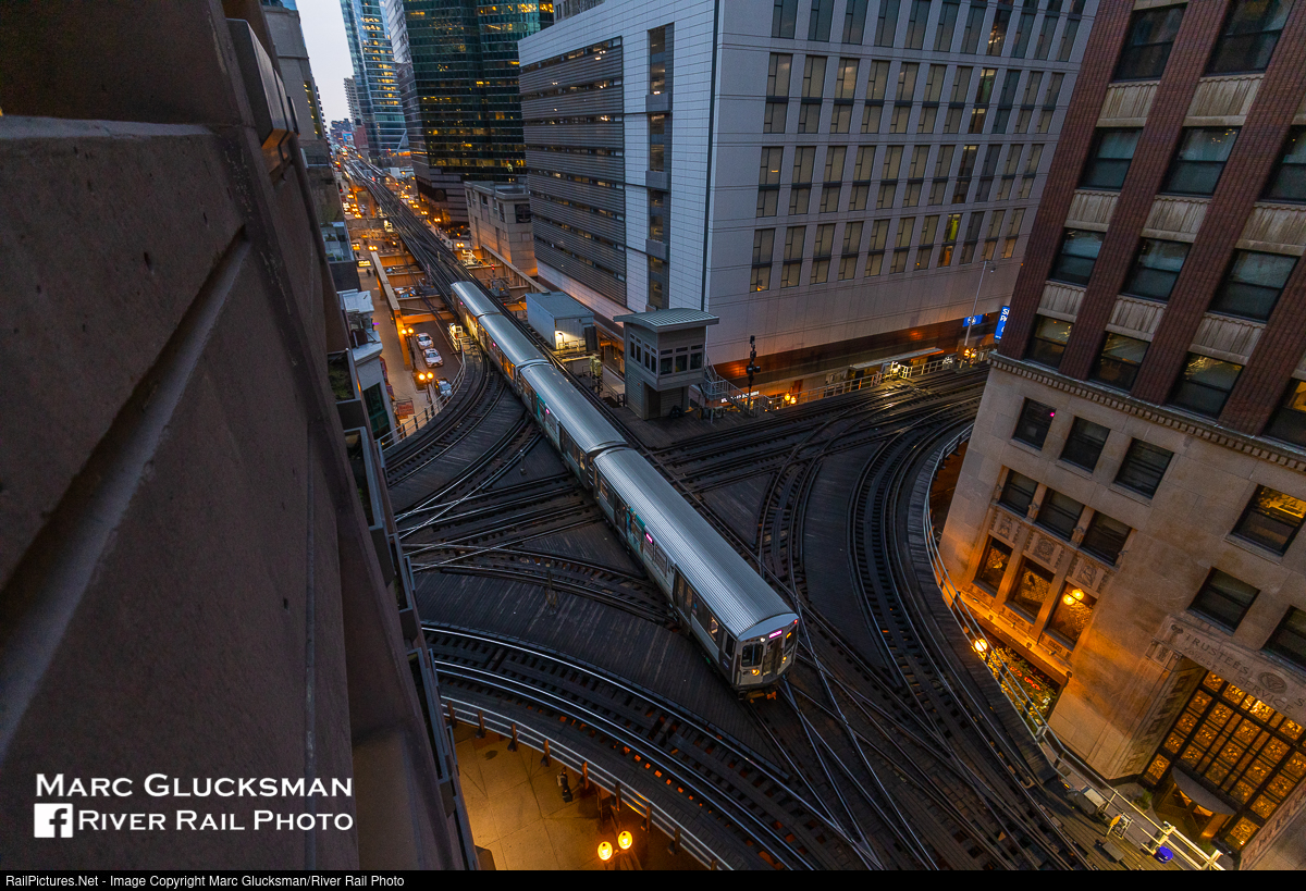 Busiest Railroad Junction In The World? The interlocking at Tower 18 on the Chicago Transit Authority "L” at West Lake And North Wells Streets oversees the movement of Purple, Brown, Pink, Green, and Orange Line trains on a daily basis. This amounts to thousands of trains a day routed around the “loop”. The present building at this location was opened in 2010 as part of upgrades to track and signals. On the evening of Wednesday, May 4, 2022, CTA 5008 leads a Pink Line train across Lake Street towards the Clark/Lake Station, showing Tower 18 on the northwest corner of the interlocking This car is one of the original 12 cars delivered by Bombardier in 2009 (5001-5012) as part of the 5000 series order, that would ultimately total 714 cars (last delivered in 2015).