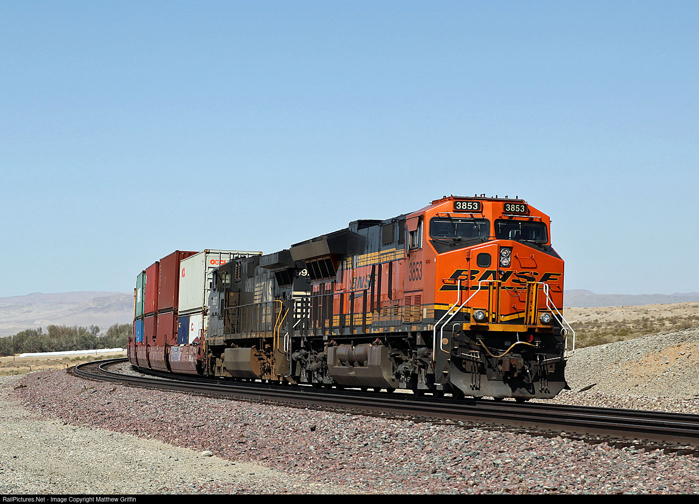 RailPictures.Net Photo: BNSF 3853 BNSF Railway GE ET44C4 at Hodge, California by Matthew Griffin