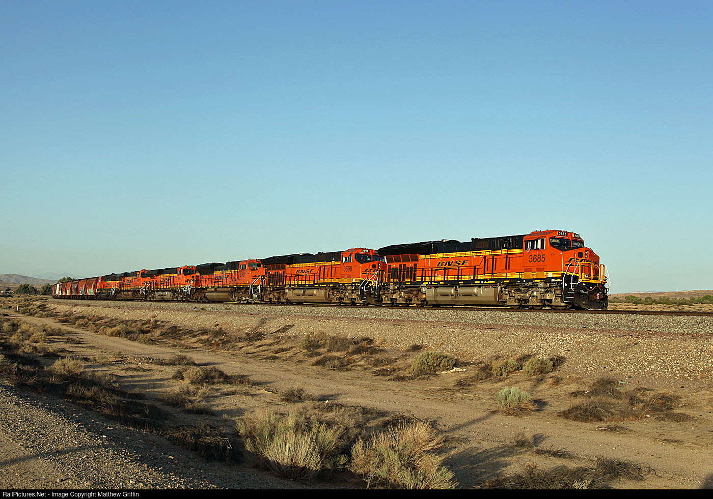 RailPictures.Net Photo: BNSF 3685 BNSF Railway GE ET44C4 at Hodge, California by Matthew Griffin