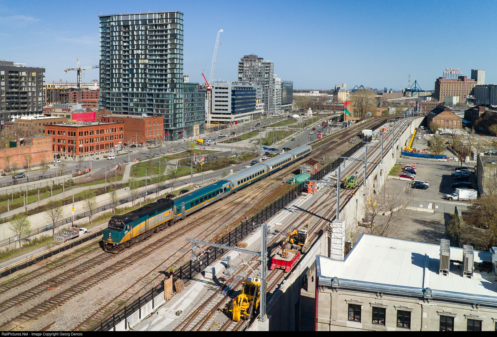 | The approach to Montreal's Gare Centrale is changing itscharacter by the appearance of the electrified REM which is visibly near completion - the overhead wire will be in place soon and track work also seems to be in its final stages.