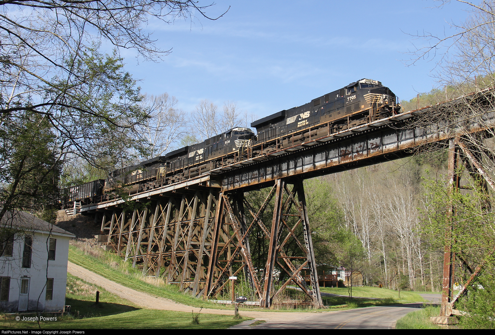 Norfolk Southern train coal train U42 rolls east across Bootleg Trestle near Sunbright, Virginia