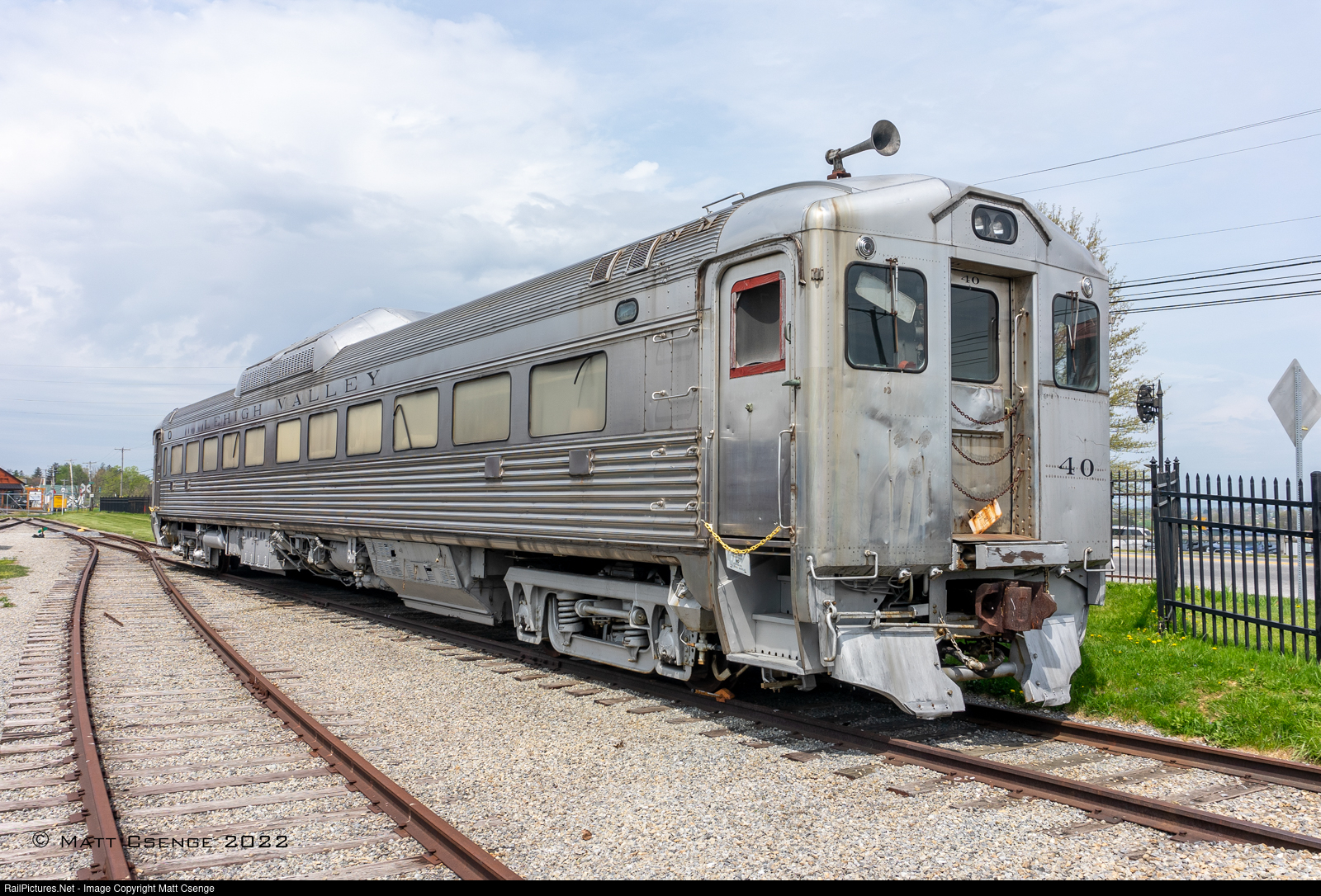 Lehigh Valley RDC 40 is seen on display at the Railroad Museum of Pennsylvania. The unit is looking a bit worse for wear, clearly not having had its turn at cosmetic restoration yet.