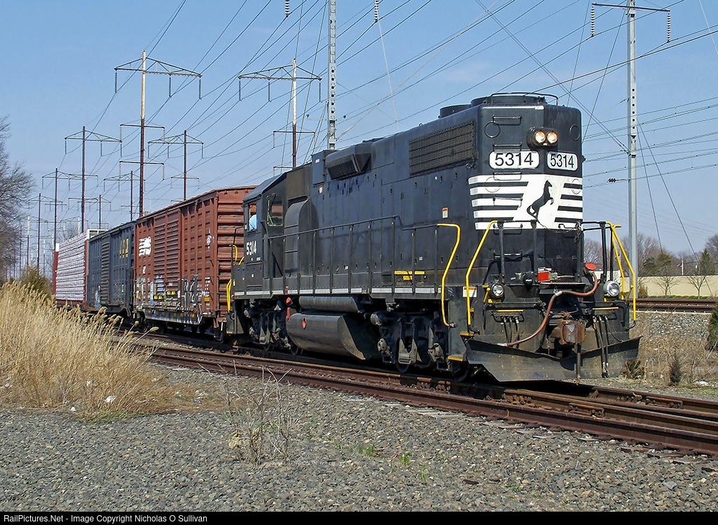 Conrail's ME2 makes its way south on the Delco Lead along Amtrak's Northeast Corridor. Today, it will travel to the southern most end of the Delco Lead to deliver lumber at the Blackstone Lumber Company (Inc.) at Progress Road. The lumber yard at this location has been closed since approximately 2010. The locomotive originally was PC 8132 for Penn Central, then went to Conrail as CR 8132, before going to Norfolk Southern. A graffiti incident in 2005 led to one side of the locomotive being painted all black, as seen here. The missing logo was restored on the locomotive by 2011.