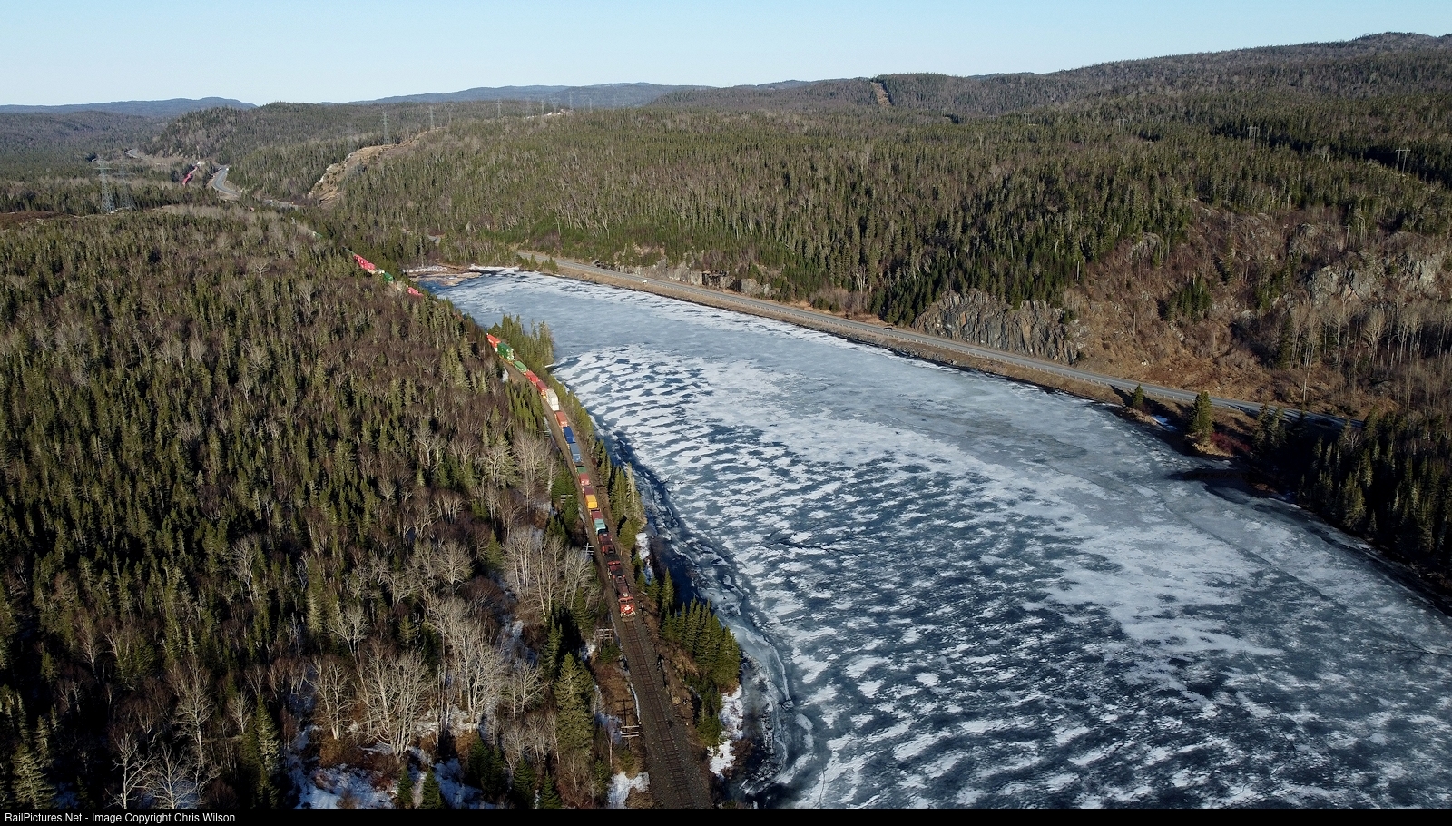 CP 118 twists through the wilderness alongside Trans Canada Highway #17 and a still frozen Ripple Lake