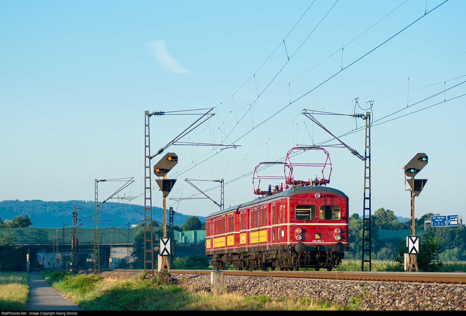 | On an early July morning, historic ET65 is heading south near Ettlingen, south of Karlsruhe, on a chartered trip organized by Stuttgart's SVG. |